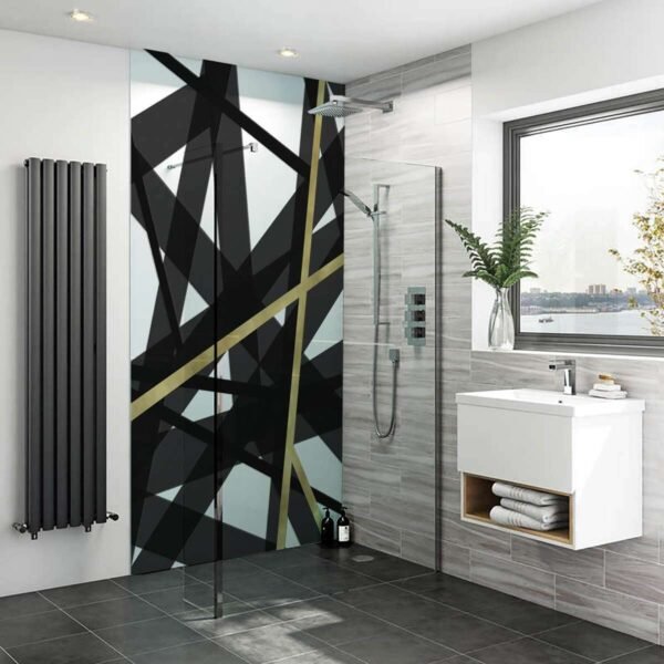 The Abstract Black Gold 02 Shower Panel offers a sophisticated and modern solution for contemporary bathroom designs. Its striking black and gold pattern adds elegance while ensuring easy maintenance and long-lasting performance.