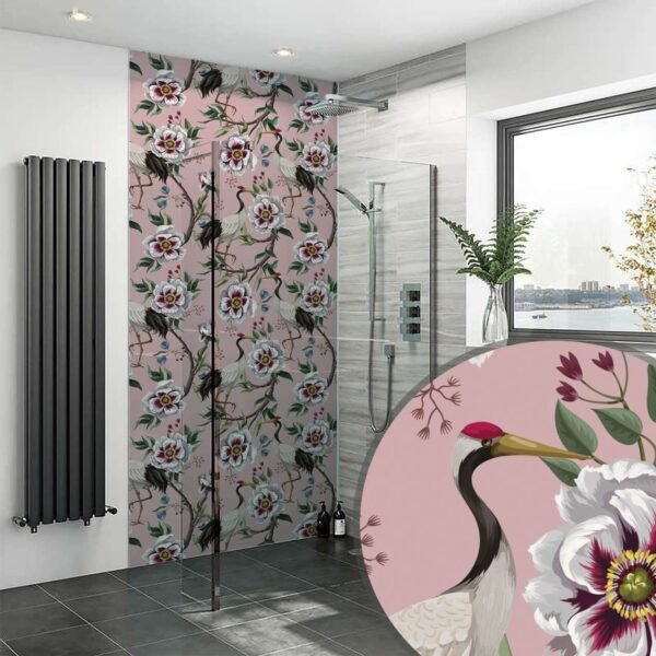 Acrylic JAPANESE CRANE BIRD PINK Shower Panel
