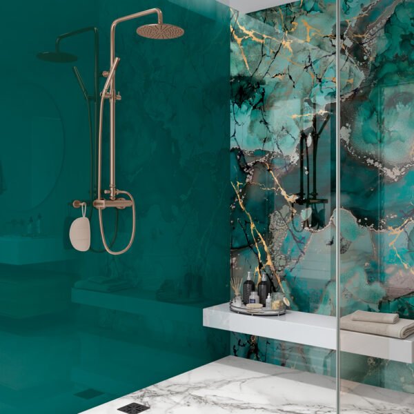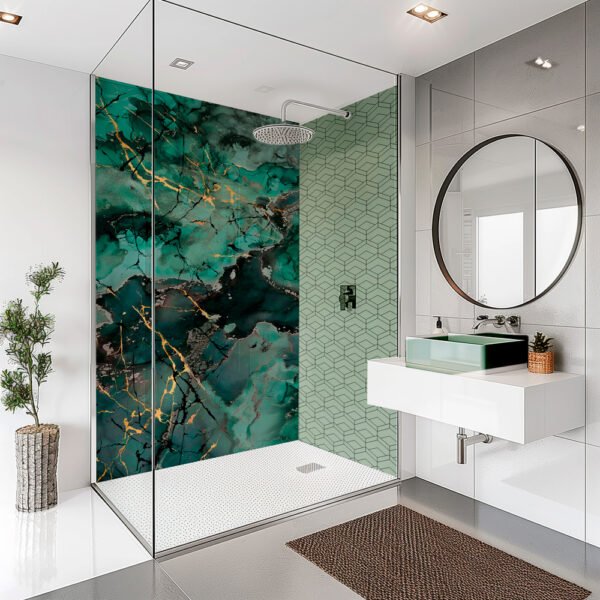 The Acrylic Liquid Marble Teal Shower Panel is designed to add a luxurious and contemporary feel to your bathroom. Its fluid marble-inspired design pairs beautifully with modern interiors.