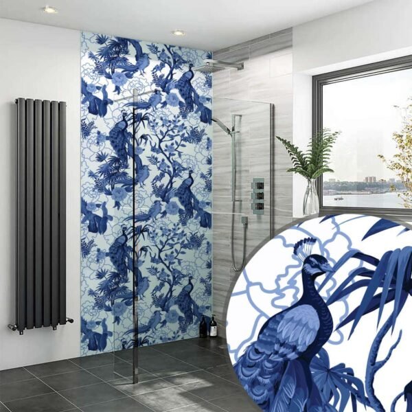 The Toile de Jouy Peacock Shower Wall Panel from SplashBax is a stylish and practical solution for modern bathroom interiors. Featuring an elegant peacock-inspired Toile de Jouy design, this panel combines sophistication with easy maintenance, offering a chic update to any shower space.