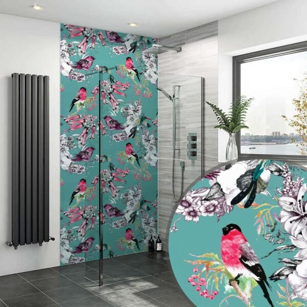 SplashBax Tropical Birds Flowers Acrylic Shower Panel
