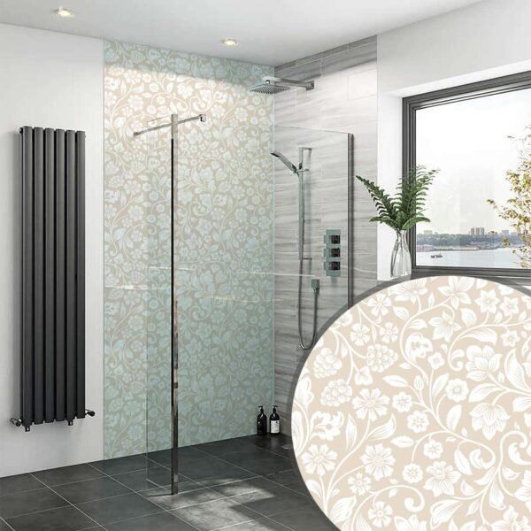 The William Morris Wild Floral Sand Shower Panel is an ideal choice for contemporary bathroom designs, blending artistic patterns with easy maintenance. Its elegant floral design adds a touch of sophistication while providing a durable, waterproof surface.