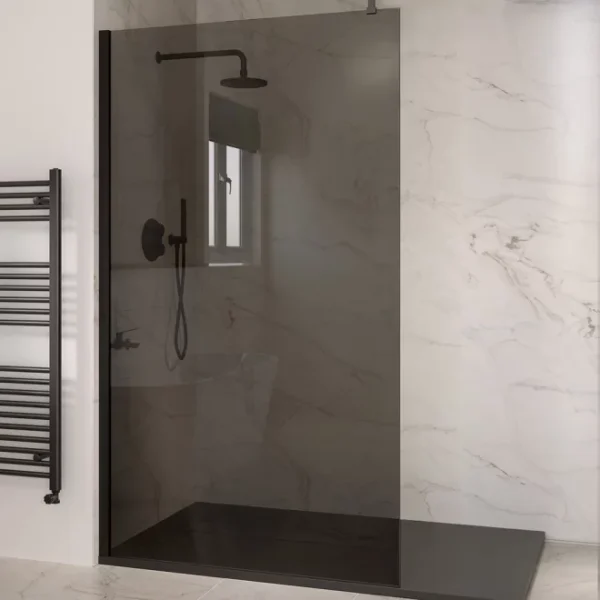 This walk in shower screen is made from toughened smoked safety glass, providing durability along with added privacy. Designed for use with a wetroom floor or shower tray, the fixed panel creates an open, spacious feel while helping to control water spray. A support arm is supplied to ensure stability, and the glass is treated to help reduce water marks and make cleaning easier.