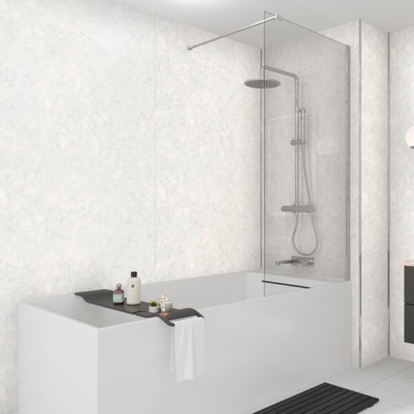 Our Bianco Marble panel with its beautiful subtle marble finish is the perfect addition to any bathroom.