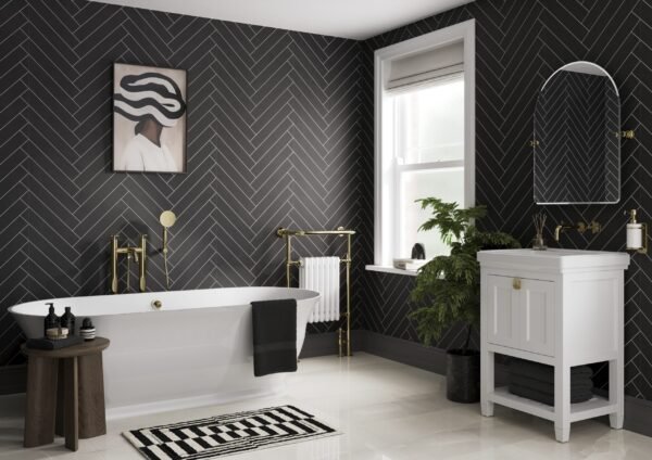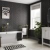 Black Velvet Herringbone panels from the Showerwall Original Collection offer a contemporary and waterproof wall solution that is both stylish and easy to install, ideal for modern bathrooms.