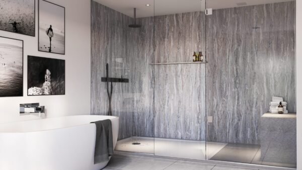 Blue Tone Stone panels are available in a range of sizes to suit most bathroom layouts and installation needs.
