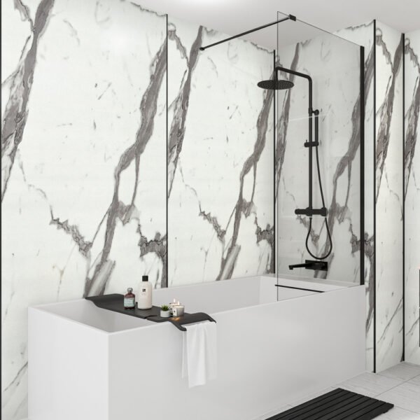 The perfect feature wall, our Calacatta Statuario panel will be sure to turn heads with its beautiful bold marble finish.