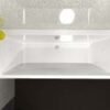 High-gloss white finish complements modern bathroom aesthetics