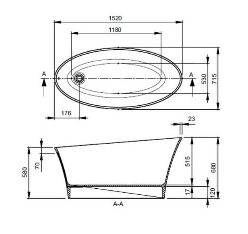 Delicata Cian Solid Surface Freestanding Bath, 1520 x 715 By BC Designs