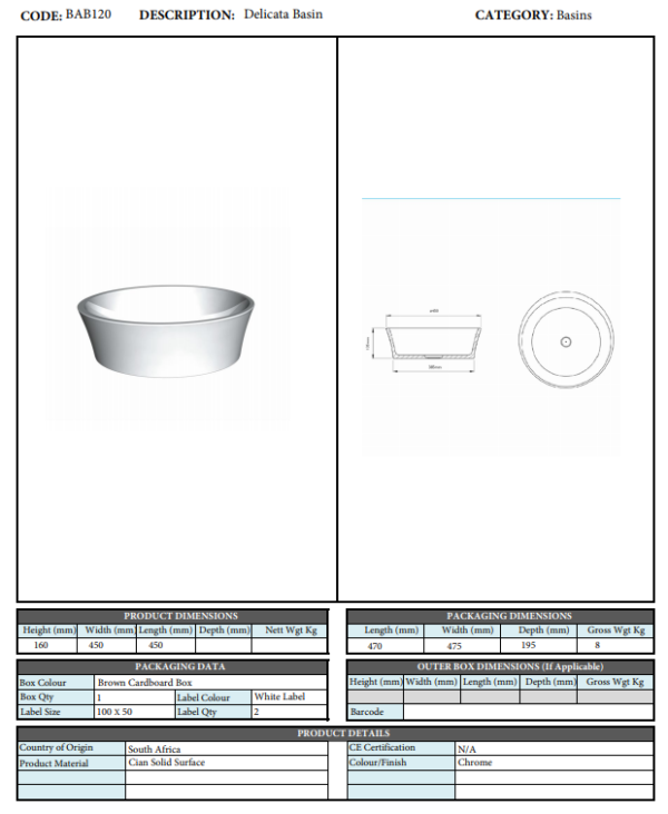 Optional Delicata Basin:
