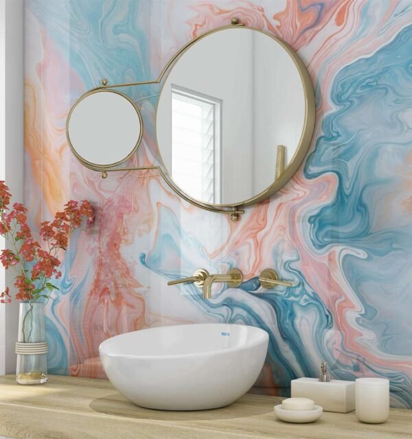 Each panel is crafted from a 3mm thick Di-Bond sheet and features a sharp UV-printed candy floss marble design on the reverse, protected by a silver foil layer. This ensures excellent depth of finish, long-term protection, and a smooth, easy-to-clean waterproof surface.