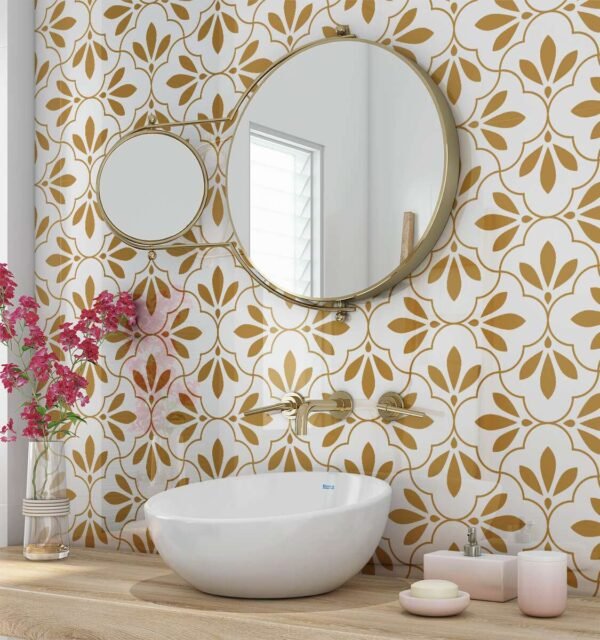 SplashBax Gold Floral Tiles panels bring elegance and sophistication to modern bathroom interiors, combining striking decorative patterns with effortless maintenance.