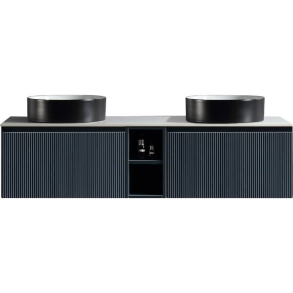 Flauto Midnight Shadow Fluted 1400mm Wall Hung Vanity Unit & Double Bowl Countertop