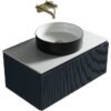 Flauto Midnight Shadow Fluted 600mm Wall Hung Vanity Basin Unit