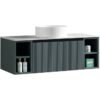 Flauto Smoked Sage Fluted 1000mm Wall Hung Vanity Unit & Countertop