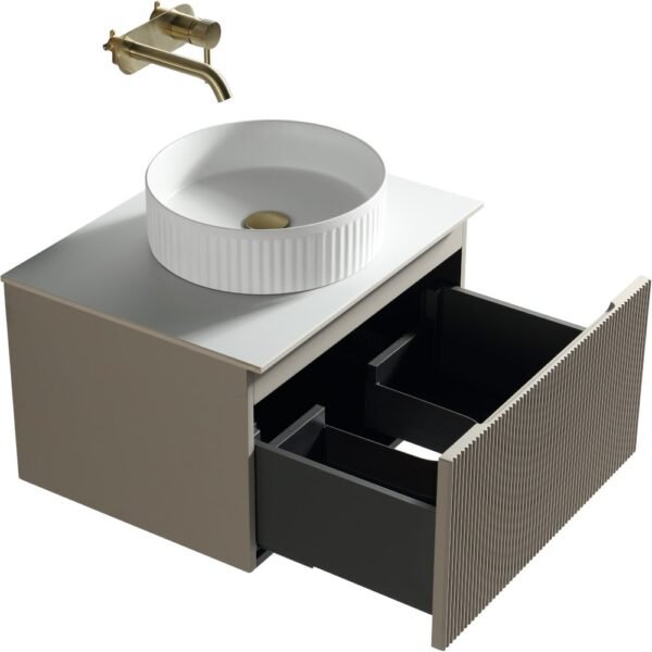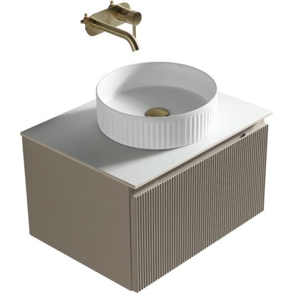 Flauto Soft Coffee Fluted 600mm Wall Hung Vanity Basin Unit