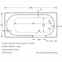 Mantaleda Avrail (1500 x 700mm) Walk-in Easy Access Bath Including Front Panel