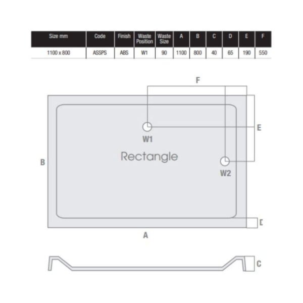 MX Elements – 1100 x 800mm – Anti Slip Rectangular ABS Stone Resin Shower Tray