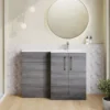 The Nuie Arno Anthracite Floor Standing Unit And Stone Basin combines wide storage with a slim basin profile for a cleaner finish.