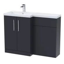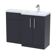 The Nuie Arno Soft Black Floor Standing Unit And Basin is a practical choice for bathrooms that need storage and basin space together.