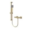 The Nuie Square Bar Valve and Slider Rail Kit combines a sleek brushed brass finish with practical functionality. Its adjustable slide rail provides a comfortable shower height for all users. Ideal for modern bathrooms, this kit includes a single-function handset and is suitable for high-pressure water systems, unvented mains pressure systems, and shower pumps.