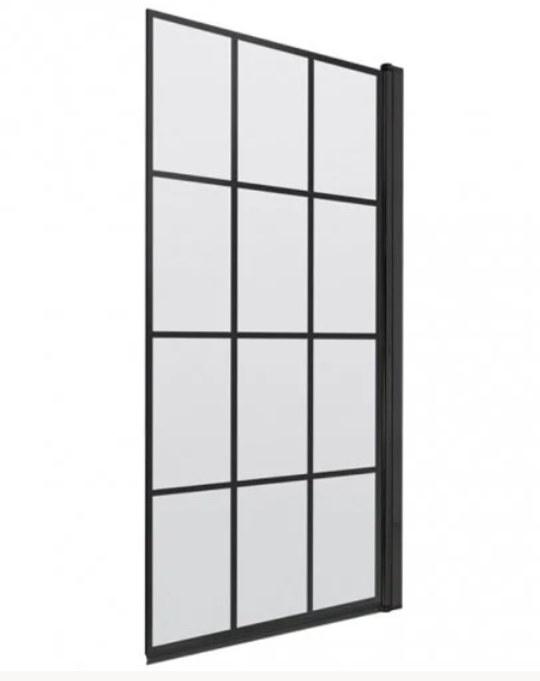 Nuie Matt Black Grid Square Framed Bath Shower Screen
