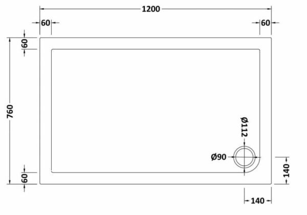 Nuie 1200 x 760mm Rectangle Shower Tray Specs: