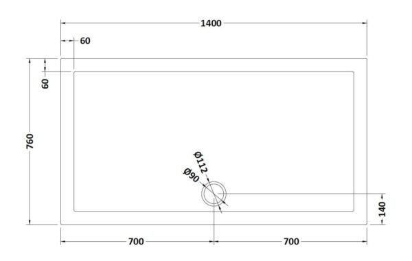 Nuie 1400 x 760mm Slate Grey Rectangle Tray Specs: