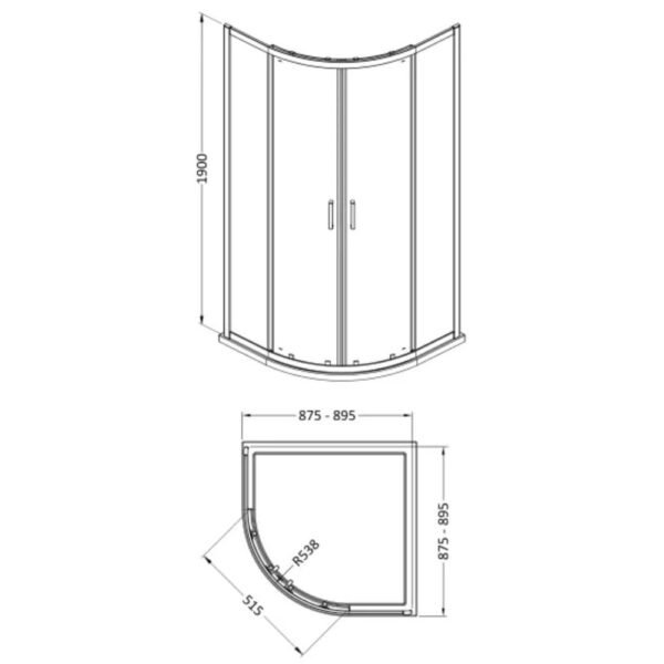 Nuie Rene 900 x 900mm Quadrant Shower Enclosure Specs: