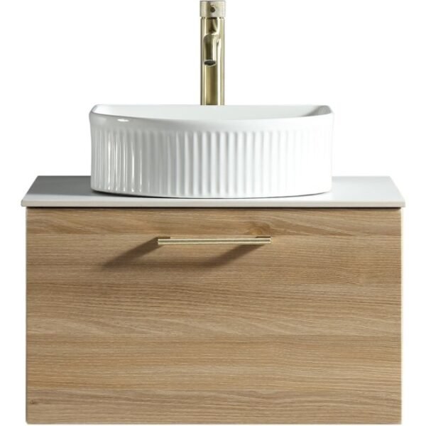 Piatta Country Oak 600mm Wall Hung Vanity Basin Unit with Countertop