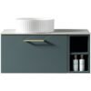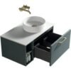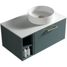 The Piatta Wall Hung Vanity Unit comes complete with a sintered stone worktop which has been pre-drilled for a single drawer unit with premium soft close runners and a side storage box with shelf.