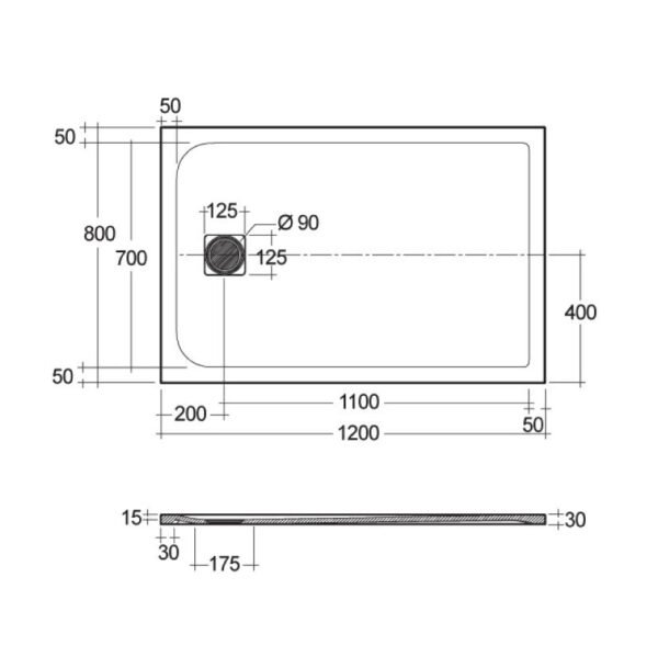 Made from RAKSOLID, a durable stone resin composite, this tray is only 30mm thick and can be installed flush to the floor, semi recessed, or directly on the bathroom floor. Its matt stone effect surface is textured for slip resistance rated Class C and is chemically resistant, light stable, and bacteriostatic. A 90mm fast flow waste is required and sold separately.