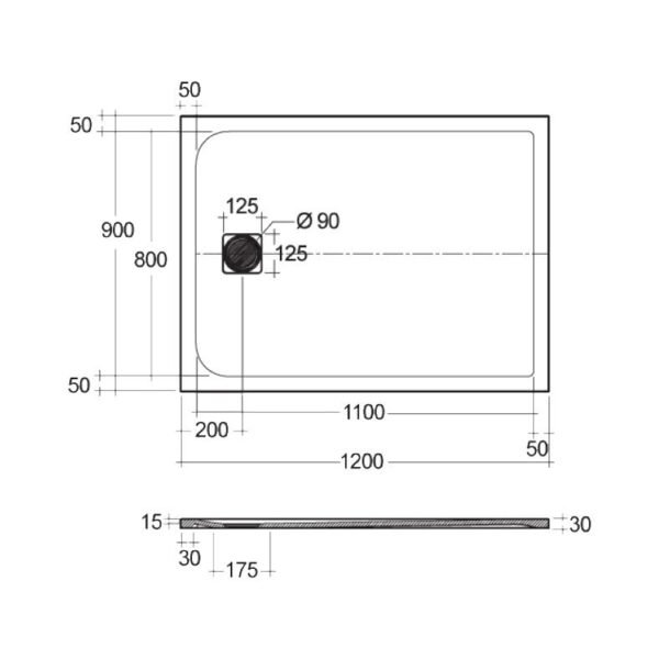 Rectangular 1200 x 900mm size fits a wide range of shower enclosures