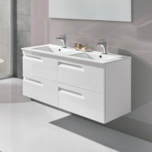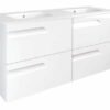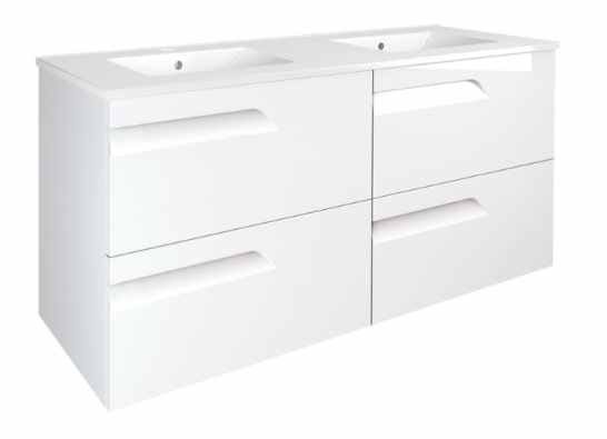 Royo Vitale 1200mm 4 Drawer Wall Unit & Double Square Ceramic Basin in Gloss White