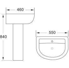 Dimensions (with full pedestal): H 840 x W 550 x D 460mm