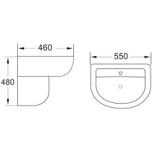 Dimensions (with semi pedestal): H 480 x W 550 x D 460mm