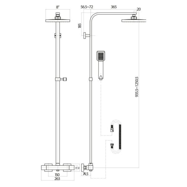 Scudo Elliott Square Brushed Brass Dual Head Rigid Riser Shower Specification: