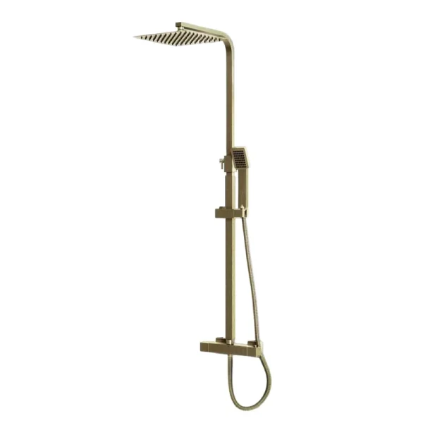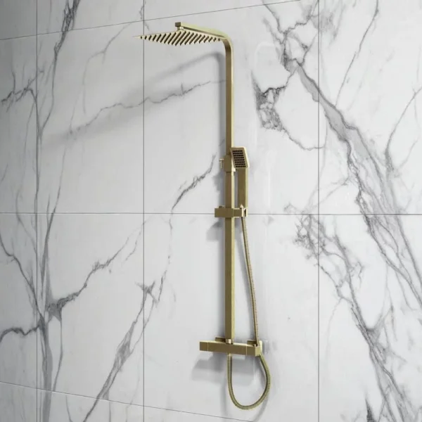 Scudo Elliott Square Brushed Brass Dual Head Rigid Riser Shower Features: