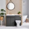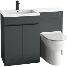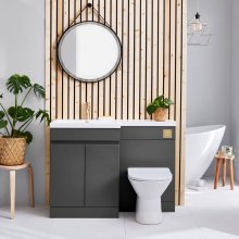A bold and grounded tone is established in the washroom by the Scudo Empire 1100mm Anthracite Bathroom Furniture Set. By interlocking the 600mm vanity with the matching WC unit, you can build out a bespoke furniture run that spans the wall. This floor-standing set includes a wide 1100mm stone basin and provides ample space to add a tall boy unit for a complete storage solution.