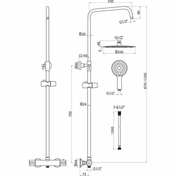Scudo Barca Cool Touch Exposed Shower Specification: