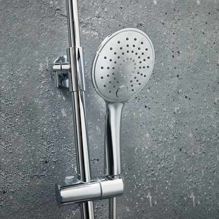 Safety for all the family is a key focus for the Scudo Barca cool touch exposed shower, which remains comfortable to handle regardless of the water temperature. The polished chrome finish provides a bright, high-shine surface that stays looking sharp, offering a versatile tone that works well alongside various wall panels or tiles in a modern showering space.