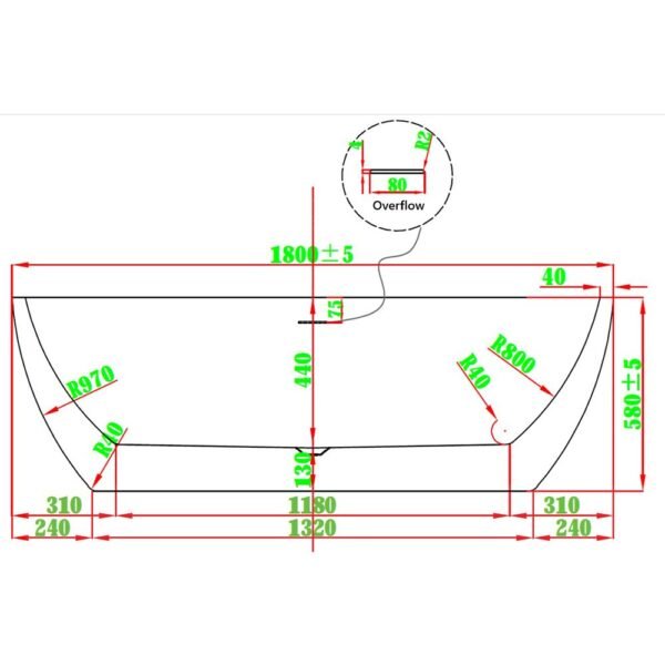 Overflow Height/Soaking Depth: 350mm