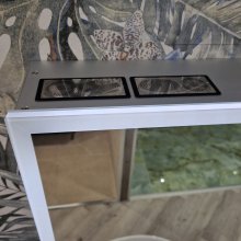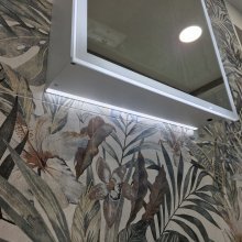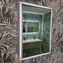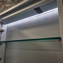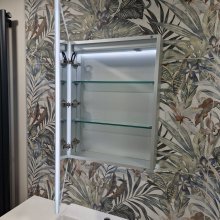 The LED lighting is activated by an infra-red sensor eliminating fingerprints. The cabinet includes a demister pad, an electric shaver socker on the inside, and mirrored side panels for additional head and shoulder viewing. For additional functionality, the two glass shelves are fully adjustable.