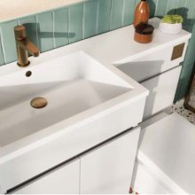 The Waterguard gloss white furniture set from Scudo is completely waterproof, meaning it will never blow, warp or delaminate like traditional veneered units, keeping your bathroom looking new for longer.