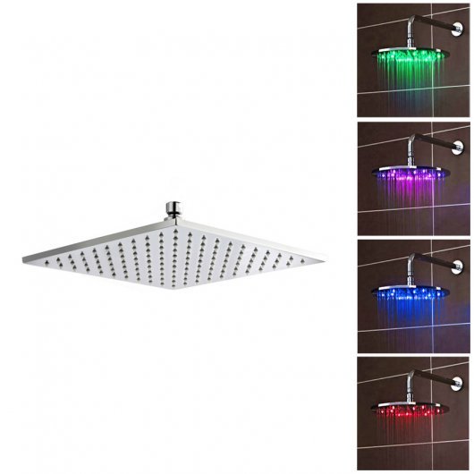 Square Light Up LED Fixed Shower Head