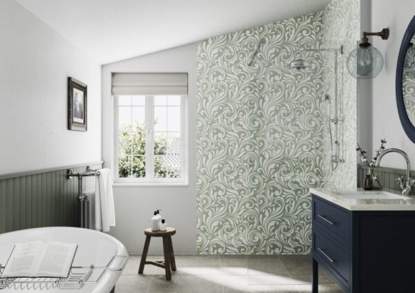 Ideal for bathrooms, showers, and wet areas, Victorian Floral Sage Acrylic Wall Panels offer a durable and cost-effective wall cladding solution. The smooth, grout-free surface enhances the visual appeal of the space and makes cleaning quick and easy.