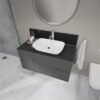 With a pale marble design the black Wetwall worktop lifted by delicate cloud-like veining, giving it a calm and refined appearance. The compact laminate construction is made to last and is easy to clean. Wetwall worktops are 100% waterproof thus making them ideal for humid bathroom environments. A colour matched sealant is also available to ensure a tidy and consistent look throughout. There is a lifetime manufacturer guarantee for added peace of mind.
